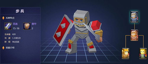 3、中排区:用于放置具有光环增益以及辅助类型的兵种,可以让整个部队的单位收到增益效果。除此以外,也可以放置血量较高的攻击型兵种,充当阵营的中坚力量。
