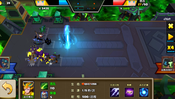 精灵族7号位,群伤,进化的闪电奇美拉一样克制骷髅海步兵海,哪怕对面只有两三个重甲前排出了一样不亏。另一分支腐蚀奇美拉城甲克星,技能2次攻击提高输出,一般情况比迫击大炮好用,打城甲首选。