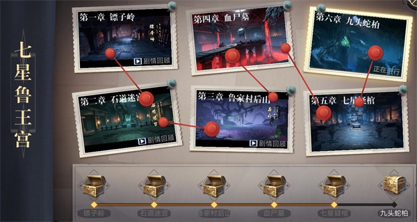 每解锁一个章节的全部内容,还能额外获取丰厚的奖励,比如通关称号、恢复道具、提升道具等等内容。也如同图中展示的一样,“镖子岭”、“血尸墓”、“九头蛇柏”、“七星疑棺”等等名场景也将一一与大家见面。