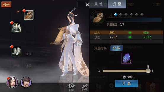 点击【角色】→ 选择装备,界面会显示装备属性与升星进度。选择【升星】,即显示当前升星进度以及所需材料的对应数量。