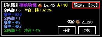 升级就要高输出高攻速,对于非火系玩家,项链可以换成【食人花项链】