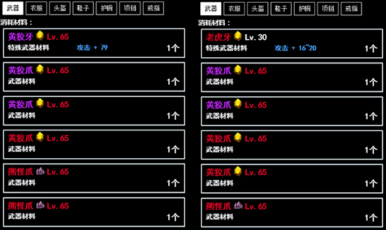 这两件装备可以使用很久,甚至到90级都没问题,建议使用特材至少做一件红色品级的出来。