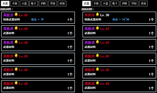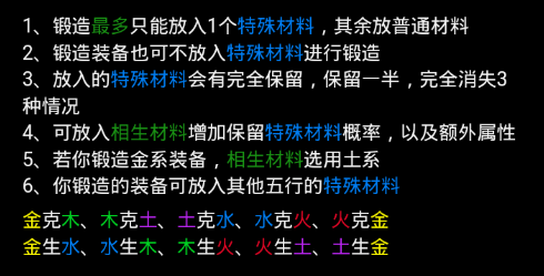 这种情况对于头盔、鞋子、护腕、项链、戒指这五个部位来讲,当特殊材料跟普通材料不属于同类的时候,就会出现无法再继续放相生材料的情况,即变成了方式一,这种情况会降低极品装备产生的概率,需要特别注意。