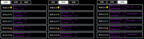 另外水系玩家配备白泽兽魂可以补足一定蓝量,木系选择犀渠兽魂、火系选择善翼兽魂均可以提升本系特长,前期不建议选择狍鸮兽魂,虚弱攻击较后期效果更好。