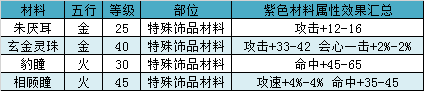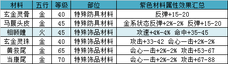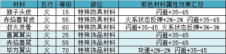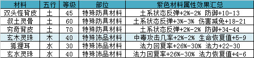 特材类型请参考特殊材料汇总表,表格统计了5-80级五系特殊材料属性(建议到QQ群文件内查看)