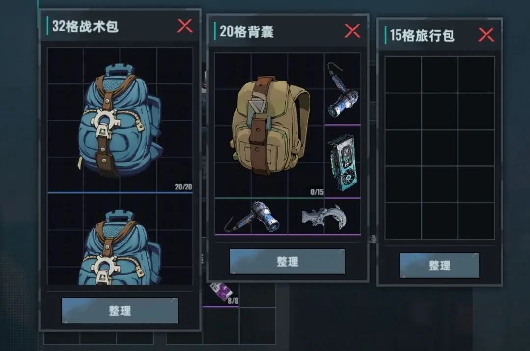 在仓库界面,您可以查看您所有的物资,装备以及战利品。