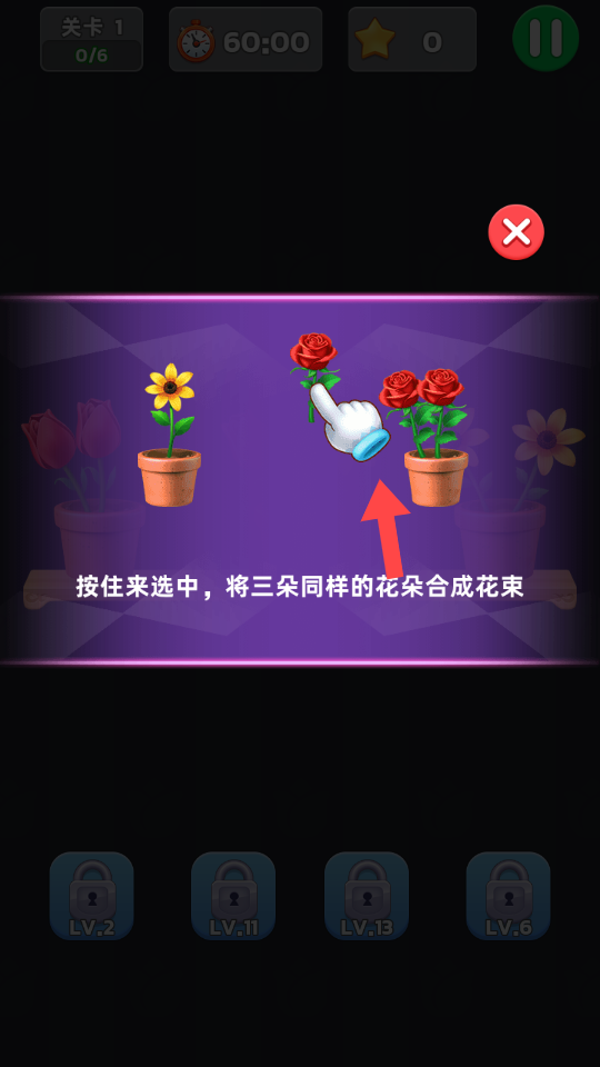 2、游戏操作直观,规则简单,将相同的花束进行消除即可。