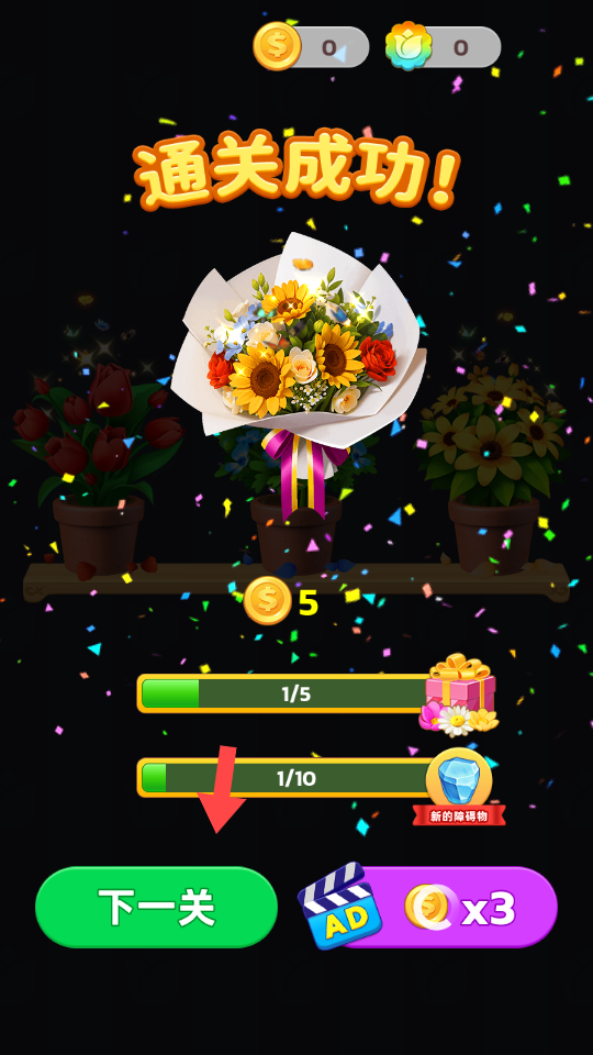 花束消除是一款充满创意与挑战的益智游戏,玩家将通过巧妙的花束搭配和消除,解决各种精心设计的关卡,以实现特定的任务目标。每个关卡都有其独特的要求,提高了游戏的趣味性和挑战性,使得每一次游戏都不乏新鲜感。随着分数的增加,玩家不仅能获得丰厚的奖励,还有机会解锁不同风格的花瓶,每种花瓶都具有独特的作用效果,为游戏增添了更多策略性和趣味性!
