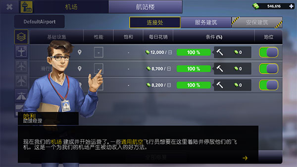 2、你的任务就是要好好的经营机场,增添更多的设施,吸引人来乘坐飞机;