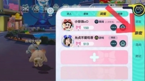 2、在弹窗中找到右侧的亲密选项,然后就会展示出已经建立关系的亲密好友。