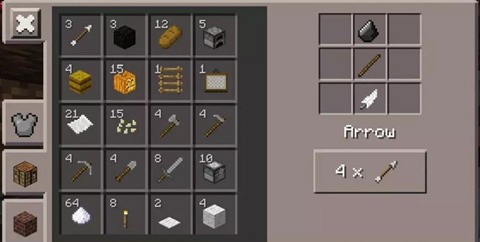 点击下面工具栏最右侧的省略号方格,可以查看你背包里的所有物品。向上一个选项卡是合成区,这里可以手动把背包内的物品转变为另一种物品,比如木头变成木板、羊毛变成羊毛垫等等。