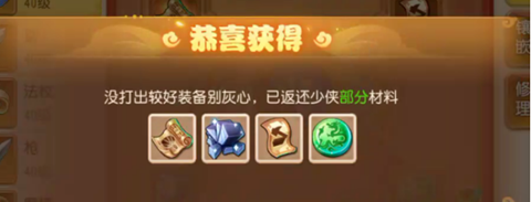 失败没关系,系统会返回你全部材料,直到你打造成功。