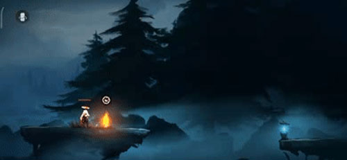 当遇到篝火的时候主角会回复满血量和存档,遇到石灯的时候需要用剑穿过石灯来搭建石阶前进继续游戏(靠,图也太糊了吧……)。