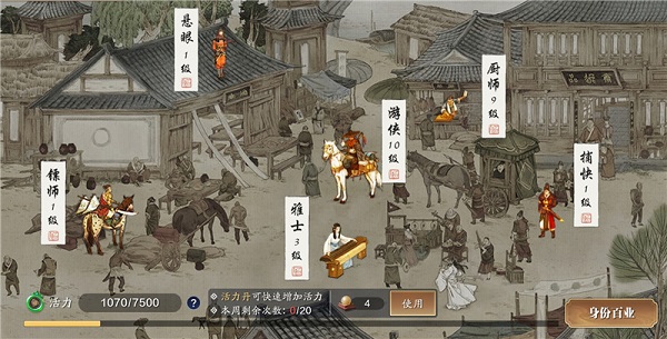 身份玩法根据缺少的东西选择:缺铸神令就去挖宝、缺少伙伴招募令的碎片就去雅士身份的答题、缺银两或碎银就去押镖。