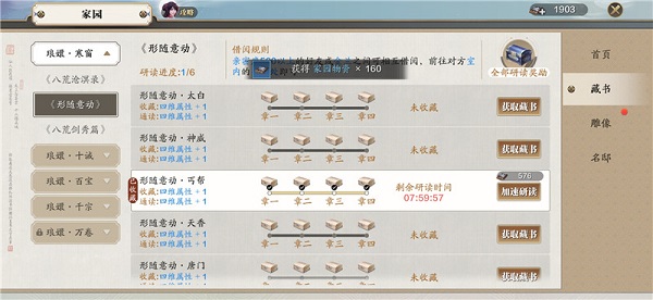 想要提功力就必须要收集书籍,收集书籍、研读书籍都会增加功力。