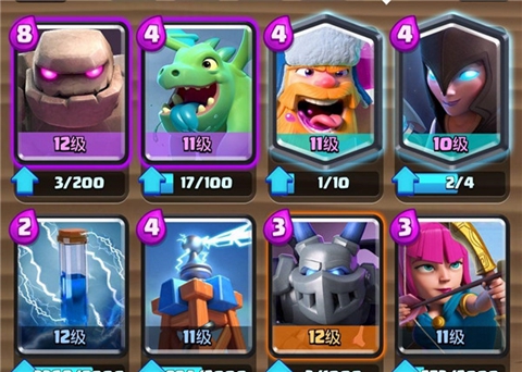 第三种就是带电塔的用这套的时候尽量不要主动出击,利用电塔+重甲亡灵+暗夜女巫构成的三角防御线,来赚取费用差,尽量拖到对己方极为有利的双倍圣水的时间即使双方的防御塔血量差很大也不要灰心,暗夜女巫和樵夫的推进能力,一定会让你大吃一惊的。