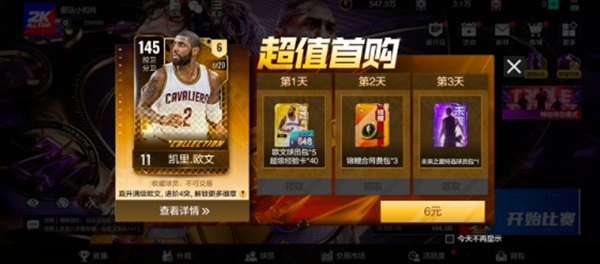 同步解锁特殊动画"转身后撤步三分"。终极建议1.优先完成新手任务,确保基础3突欧文到手。2.合理分配购物券,点卷,终极礼包性价比最高,建议搭配首充购买。通过以上三步,即使是零氪玩家也能在2周内免费获得完全体6突欧文,体验其丝滑的运球和闪电般的投篮!