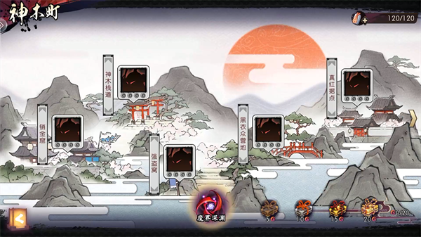 4、神本町就是游戏中的关卡任务,神木栈道,销金窟,强盗窝等等,玩家可以自行选择地图进行挑战;