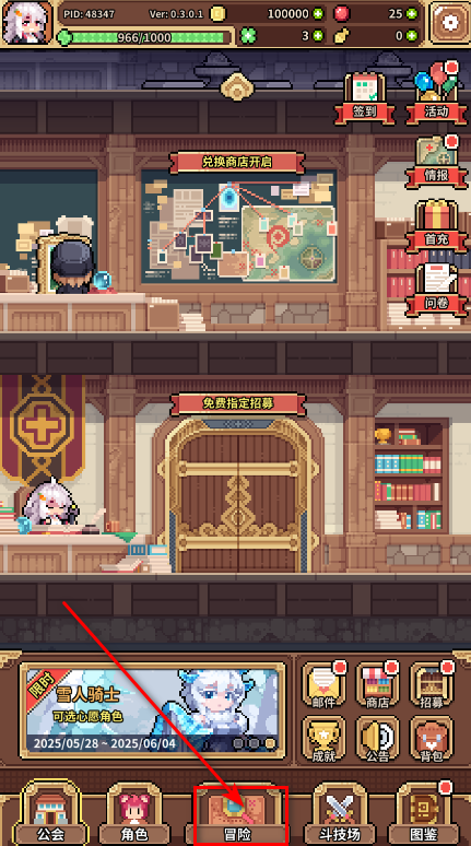 1.首先点击冒险