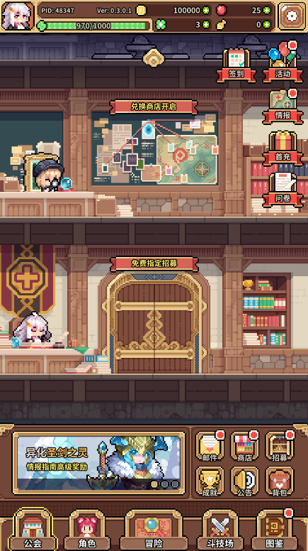 幻想少女公会是一款充满奇幻色彩的像素风放置卡牌手游,玩家将化身冒险公会会长,招募各具特色的魔物娘等幻想少女,通过策略搭配阵容和收集强力装备,在风格迥异的异世界地图中展开探索与战斗,搭配丰富的公会社交与跨服挑战,让玩家既能享受收集养成的乐趣,又能体验指尖微操的竞技快感!