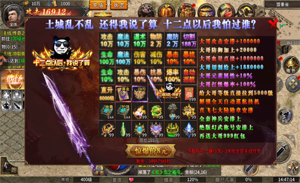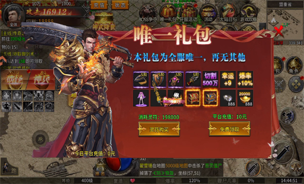 4、唯一礼包次数买满,永久提升打怪爆率,幸运值属性无上限!