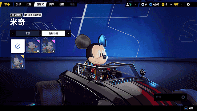 4、接着,在这里就可以对车手的胜利动画进行设置了,目前内容较少,以后还会继续更新;