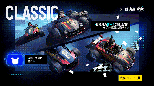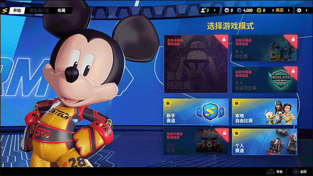 1、在模式选择界面选择自己想要玩的游戏模式了,其中地图都是采用迪士尼各大经典作品为背景,不仅有着专属的地形还有各种经典画面可以看到,
