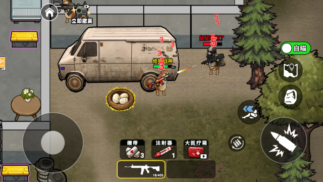2、进入后拖动左侧摇杆移动,点击右侧指令即可瞄准敌人射击。