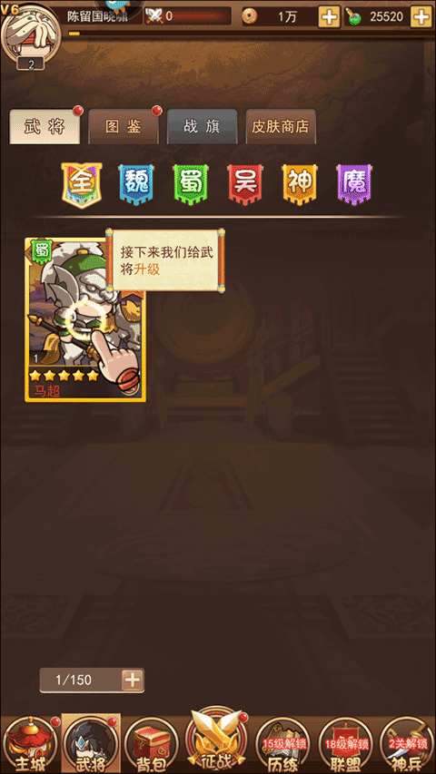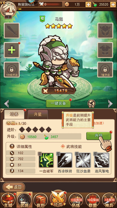 5、然后就可以通过选择并点击“升级”的选项来为武将提供最高效的培养了;