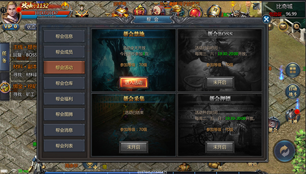 4、点击帮会活动,参加活动可以获得大量奖励和帮贡哦!