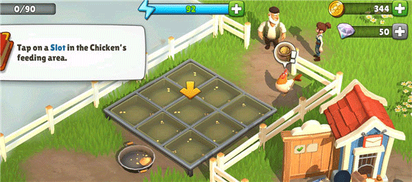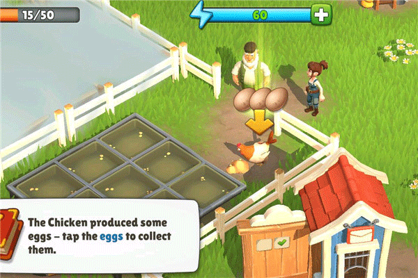 2、游戏中玩家需要帮助爷爷经营农场,按照提示先种植好豆子。
