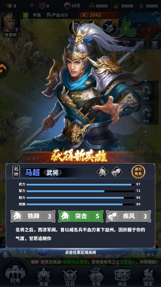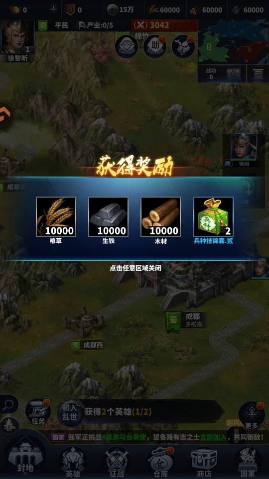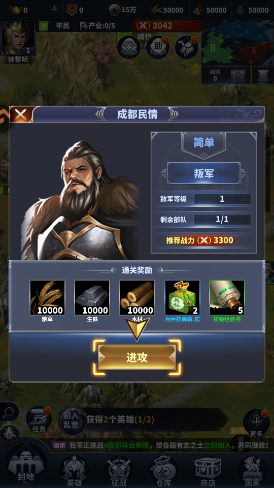8、然后我们就可以解锁我们的第一个城池,开始我们的天下一统霸业的开始。