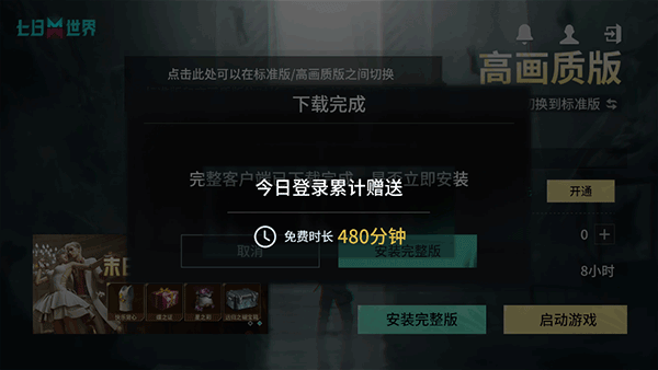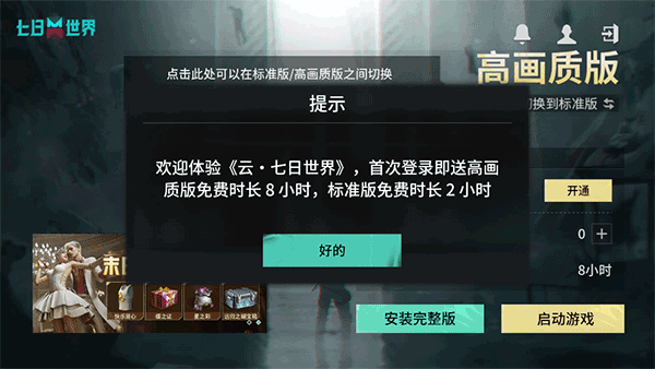 免费时长:新用户首次登录可领取高画质版8小时免费时长,标准版2小时;每日登录再赠15分钟,累计最多15小时。