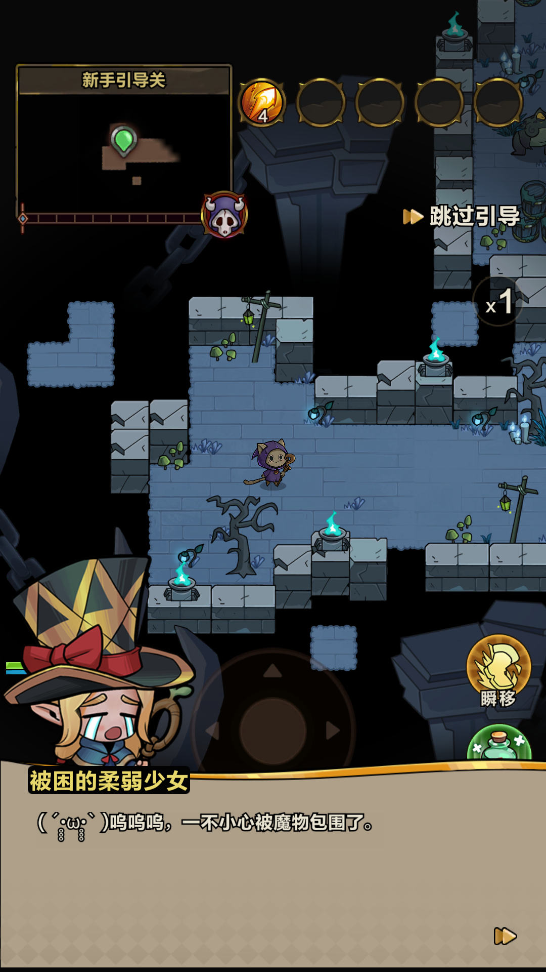 2、开局会有新手教程,你需要操控角色在地下城中闯关。