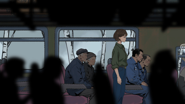 6、大巴车场景:游戏开场时,主角林天青乘坐的大巴车窗外逐渐逼近的凛山镇景象,通过窃窃私语的乘客与透着诡异的氛围,为故事埋下伏笔。