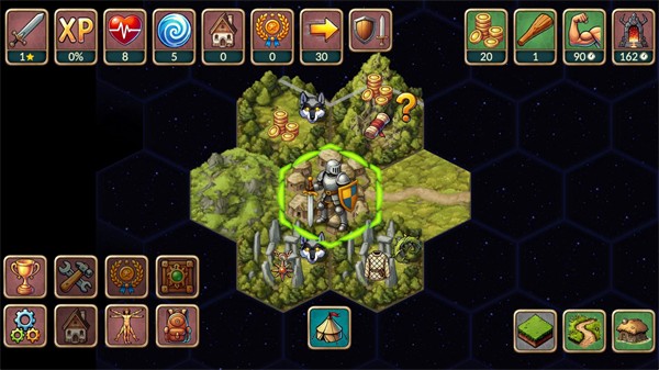3、正式开始后点击地图上的【地块】,然后再点击下方的【靴子】按钮可以指挥角色移动,每个地块上都有不同的物品可以探索。