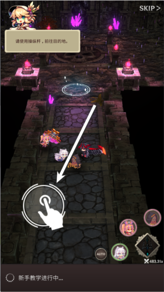 1.游戏进入后就是新手教程,图中这个是操作摇杆,滑动屏幕就可以进行角色移动。