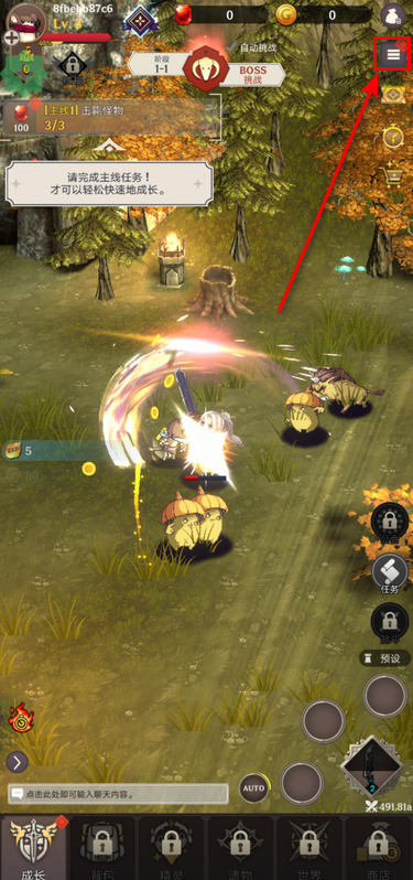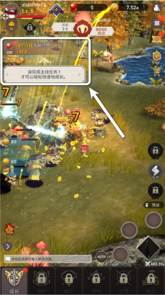 5.通过新手教学之后就会自动进行地图中的战斗探索,完成左上角的主线剧情可以帮助你更快地成长。