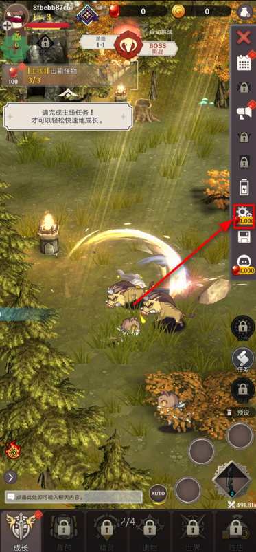 2.这个按键是自动战斗的按键,点击解锁。