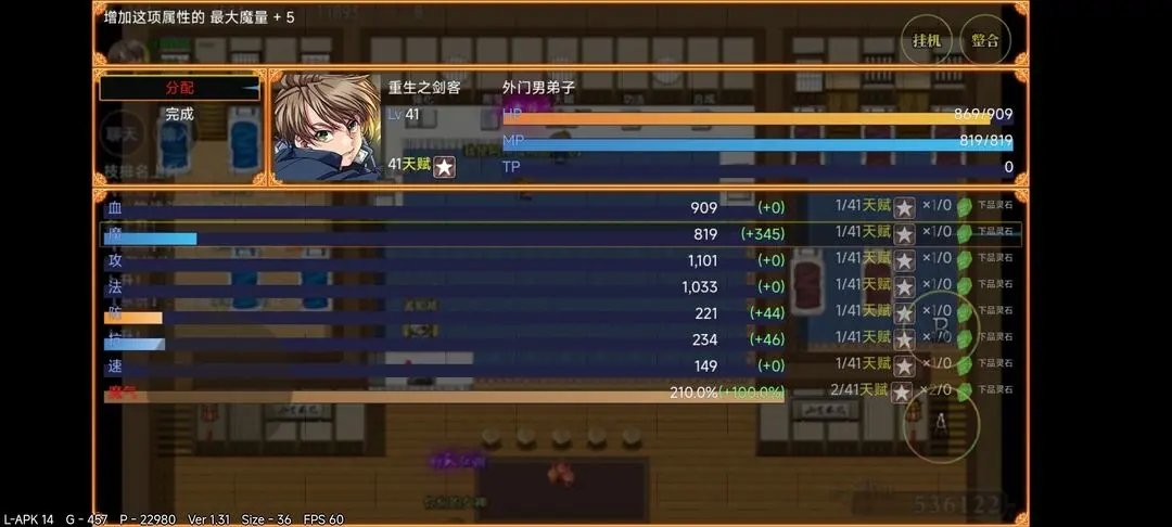 打开背包使用天赋书后最终出现下图,注意左边菜单栏里出现“天赋”,点进去后就可以进行“天赋返点,灵石全返”→注:一本天赋书使用后,可以进行每个人的天赋返点