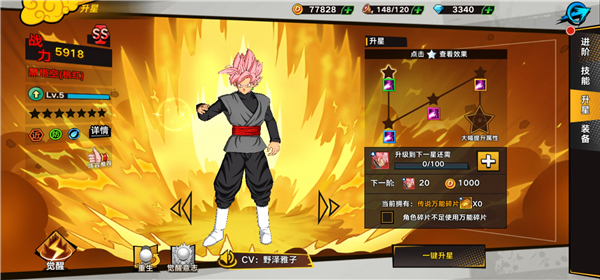 推荐角色:前期用的超二孙悟空,过副本需要用的沙鲁完全体和闪电沙鲁,蓝色贝吉特
