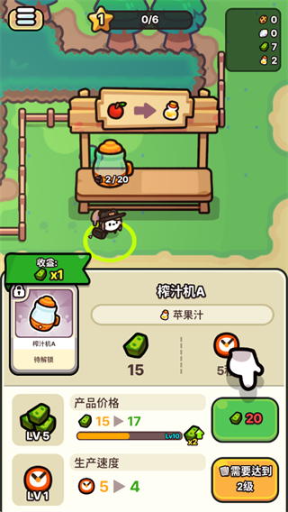 8、游戏的主要目标就是售卖饮品赚取利润,解锁附近区域逐步壮大你的水果王国