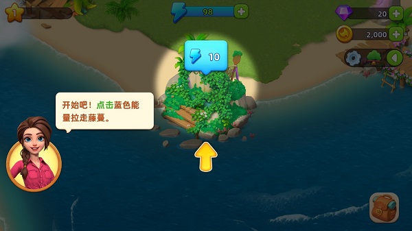 2、接下来跟随小龙的指示,清理掉藤蔓下面的杂草。