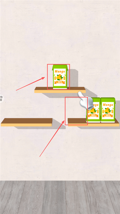 3、将橙子移到下方完成关卡,学习基础操作流程,理解游戏规则和通关条件,为后续更复杂的收纳任务打下基础,掌握技巧。