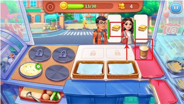 4、挑战方式是:以关卡的方式同样的玩法,继续煎饼子和豆浆给客人