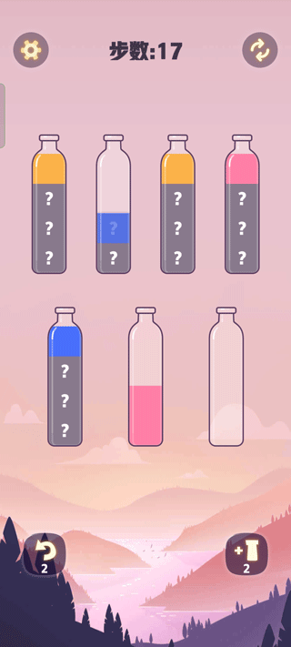 5、还有神秘的关卡,我们只知道瓶子第一层的液体,需要倒出第一层才能看见底下一层的液体,这就需要我们谨慎操作了。