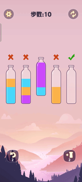 2、操作简单,上手有趣,只需滑动指尖将液体倒入瓶中即可完成挑战;