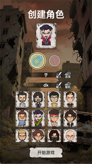 1、打开末日大本营模拟官方正版游戏后,先创建角色,确认形象与属性后点击【开始游戏】,正式踏入末世世界。