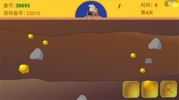 5、用锤子砸晕牛头,在用钩子抓它可以回收金币哦~