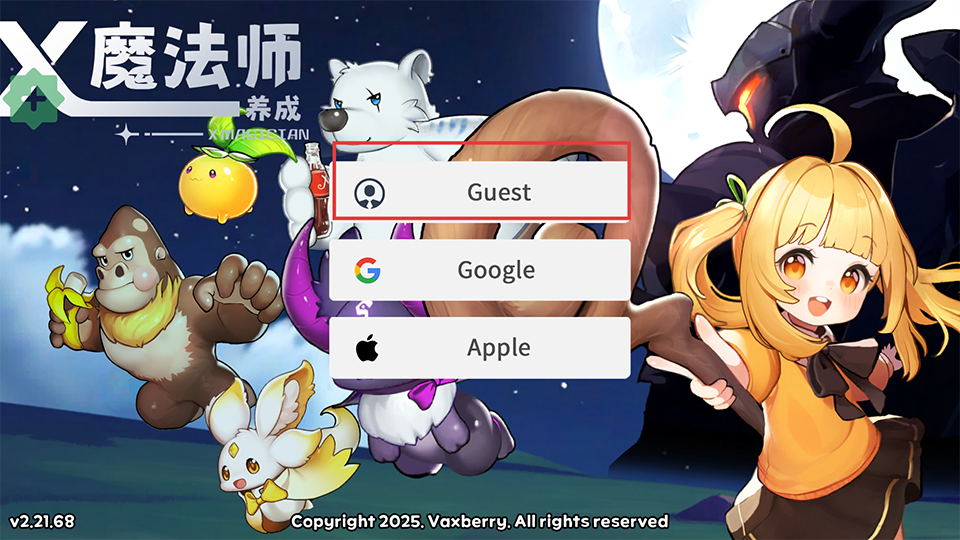 1、进入游戏后如果没有账号就点击【Guest】以游客的身份进入;